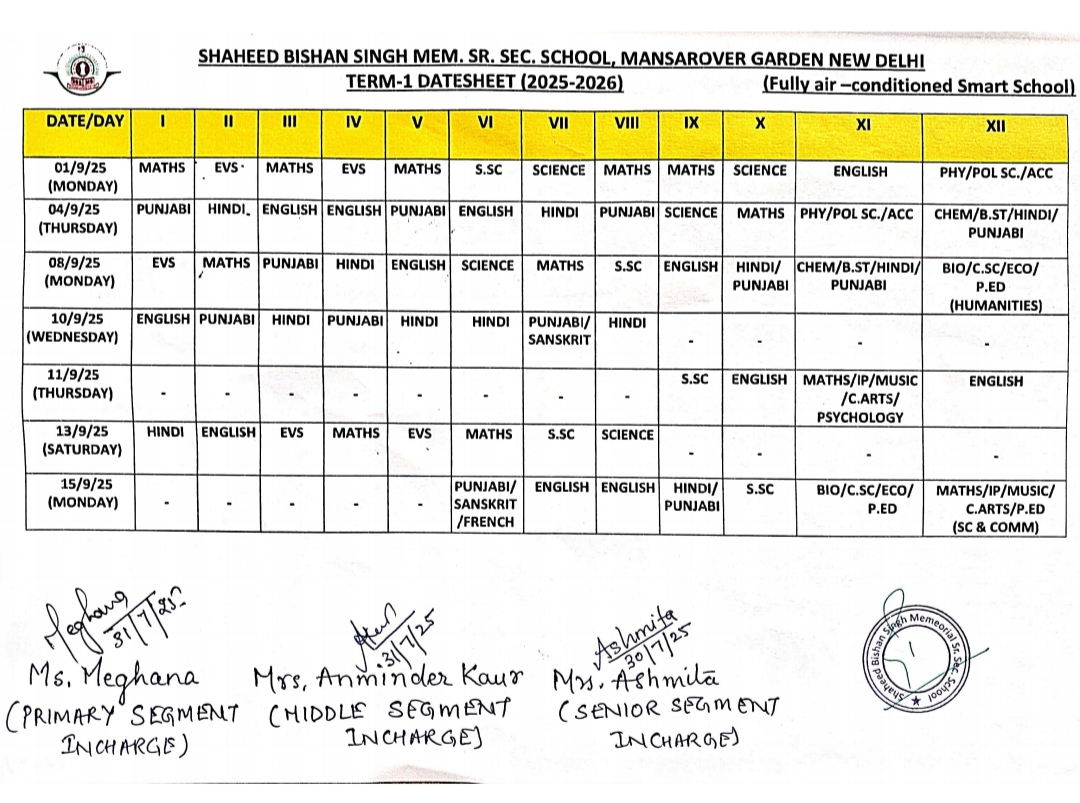 TERM - 1 DATESHEET (2025-26)